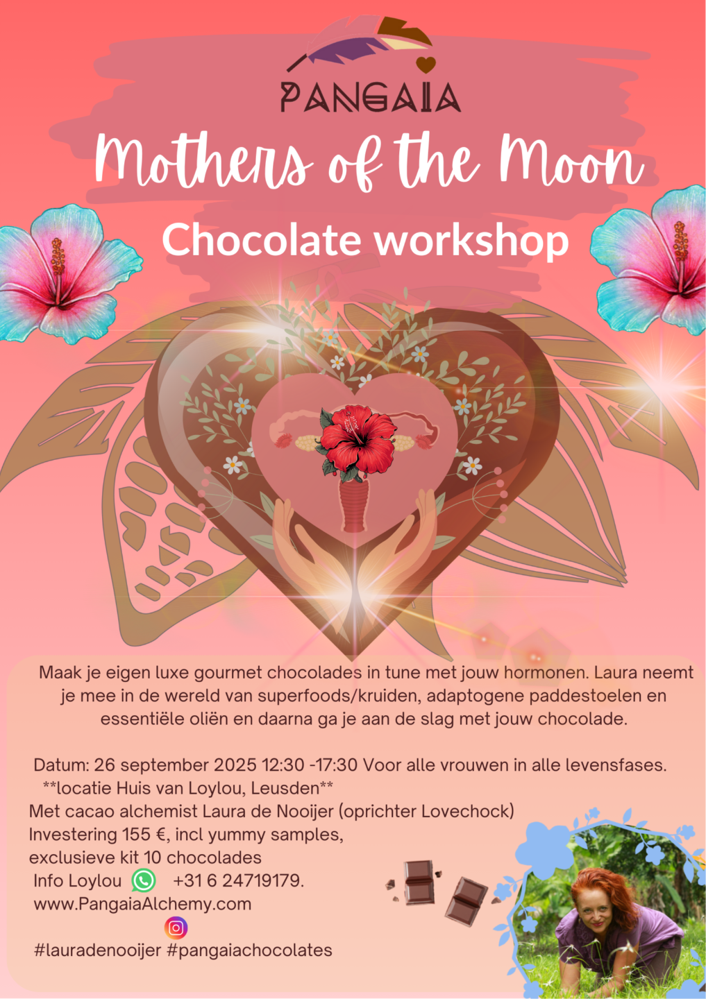 - 26/09 Mother of the Moon : Hormoonbalancerende chocolade maken met kruiden, essentiële olie en superfoods, Leusden.