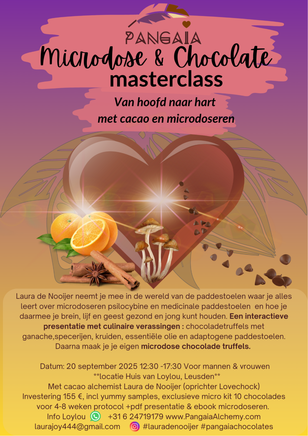 - 20/09 Microdose ‘n Chocolate ; cursus microdoseren en medicinale paddestoelen, Leusden.